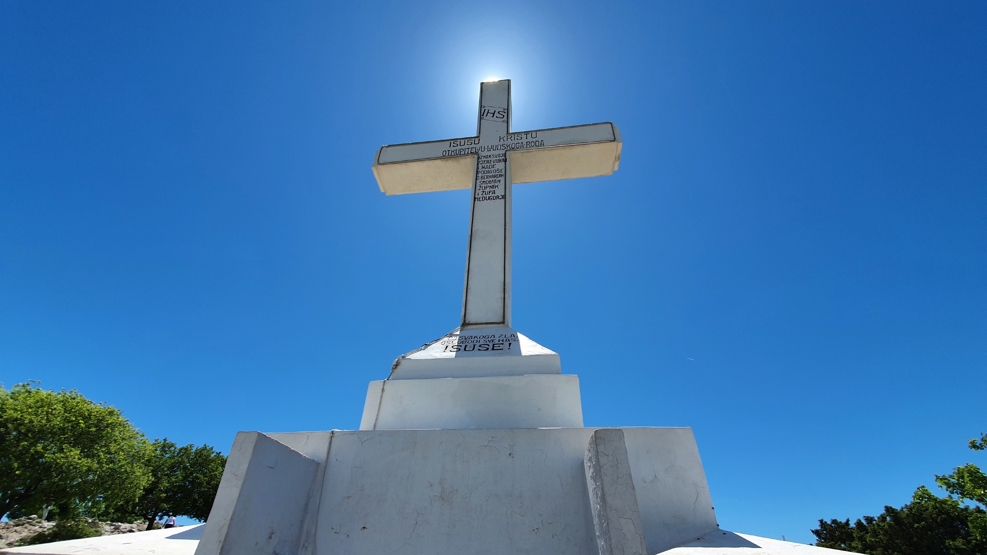 At the foot of Apparition Hill, at the exit of Bijakovici, is the Blue Cross. Today this only for a prayer arranged place has a history going back to 1985. Visionary Ivan's prayer group gathered there regularly. On their first meetings, they had a blue cross placed before them. Until today, the site's name remains a "Blue Cross," which is a location of the apparition of Gospa to Ivan during the prayer meetings of the visionary's prayer group. They meet regularly, ever since July 4th, 1982.